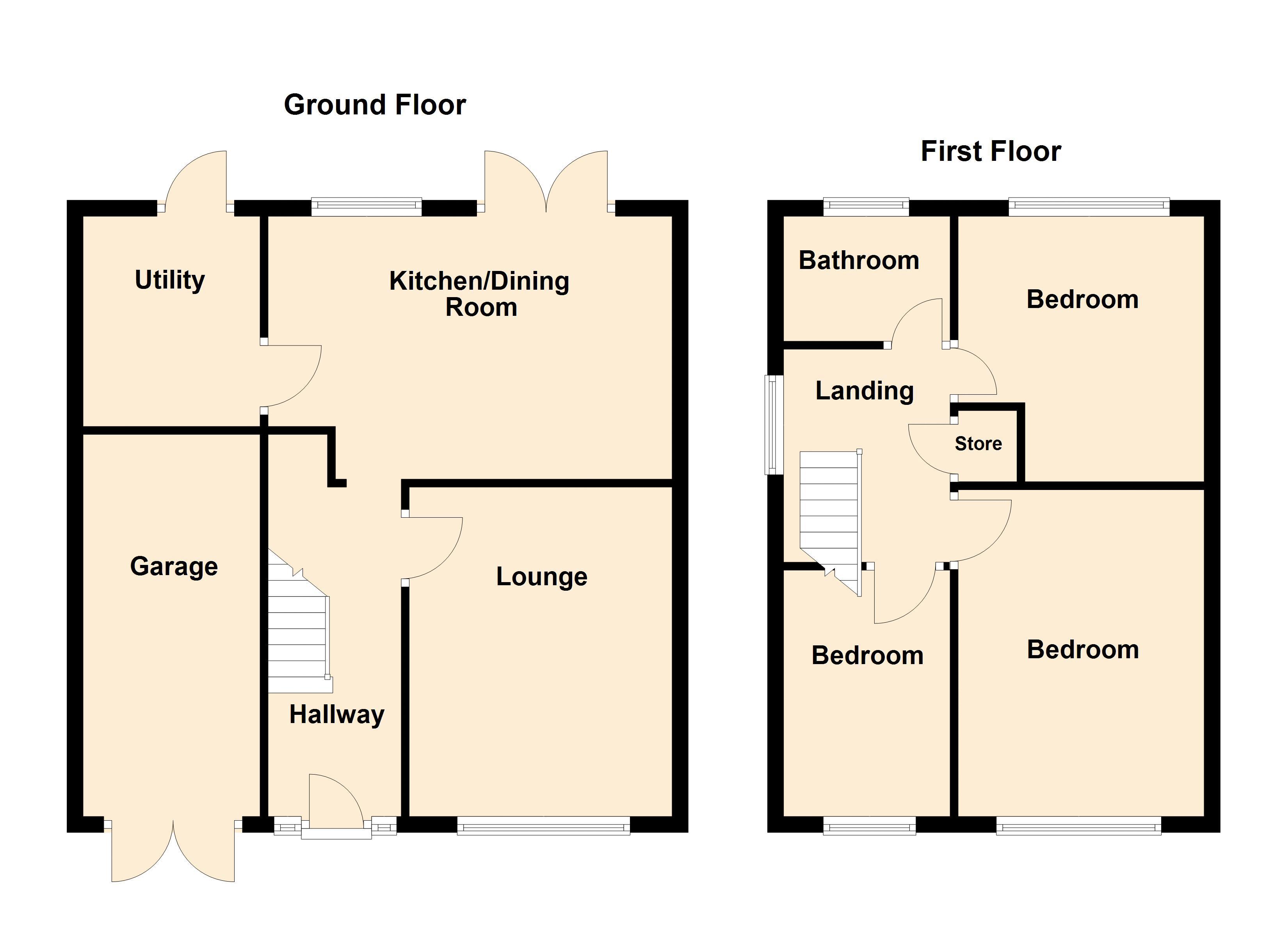 • THREE GOOD SIZED BEDROOMS
