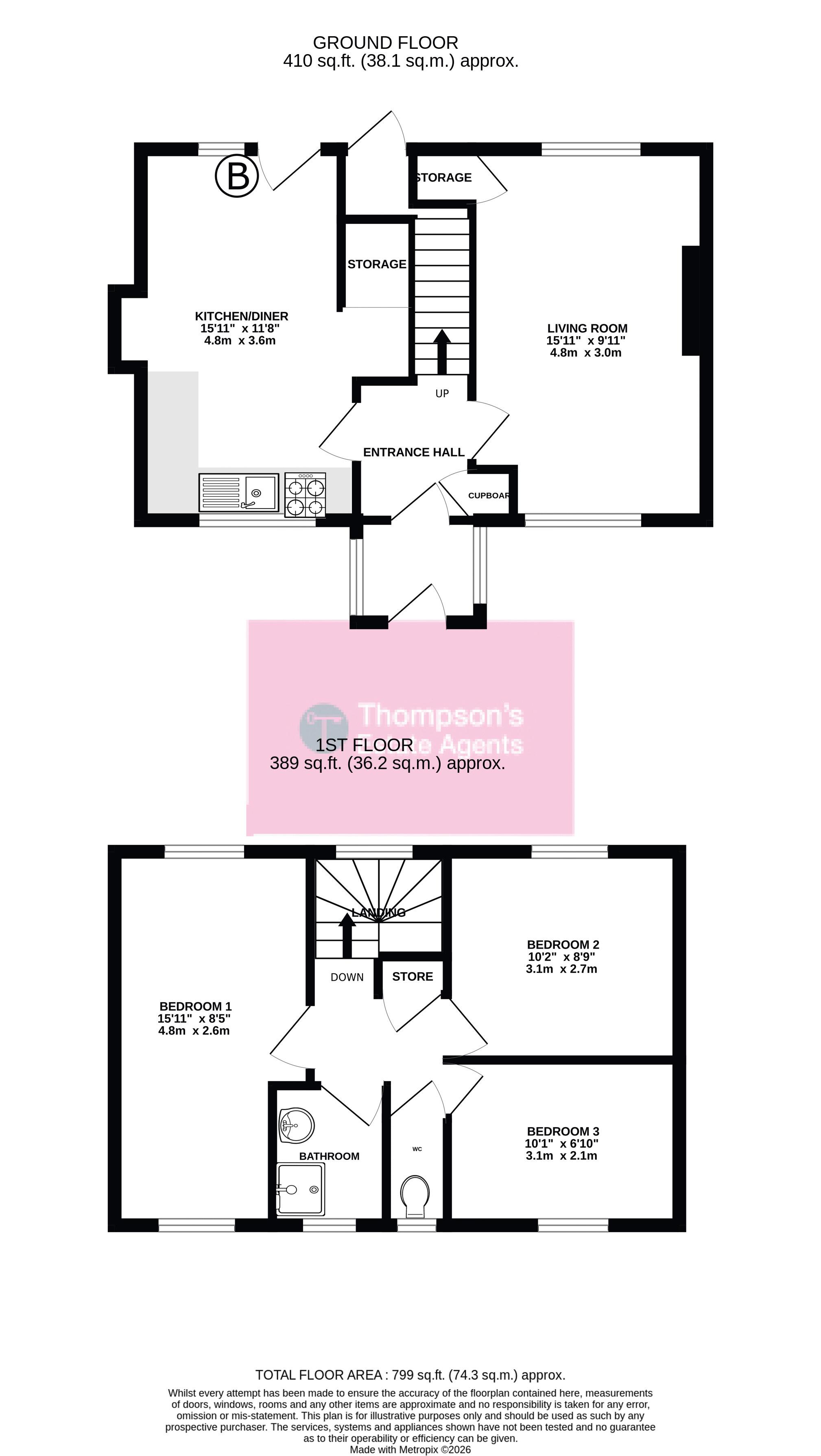 Carpeted flooring, ceiling light point, double glazed window to the front and to the rear, plug points, television point, gas fire with surround and understairs storage.