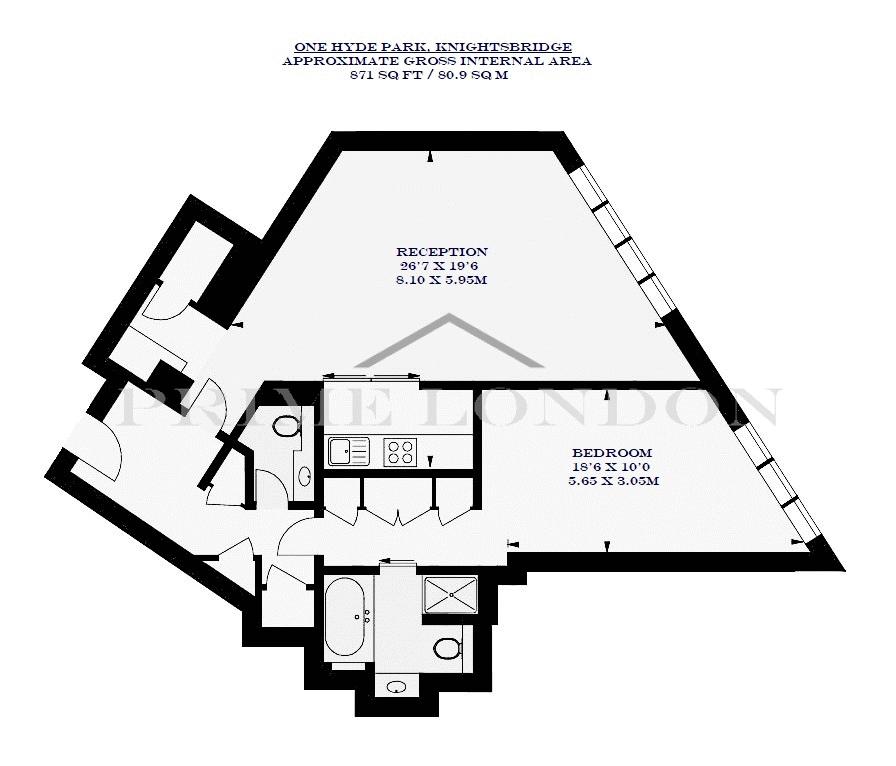 The 871 sq ft / 80.9 sq m benefits from an enviable view over Knightsbridge and will be interior designed and furnished to the highest standard. For instance, the Bulthaup kitchen is fitted with high quality Gaggenau appliances, and the bar area includes a fitted coffee machine and champagne fridge. The bathroom also reflects the exceptional level of quality and attention to detail on display throughout the development, boasting a shower with full ceiling to floor polished and honed stone work and a sunken marble basin.