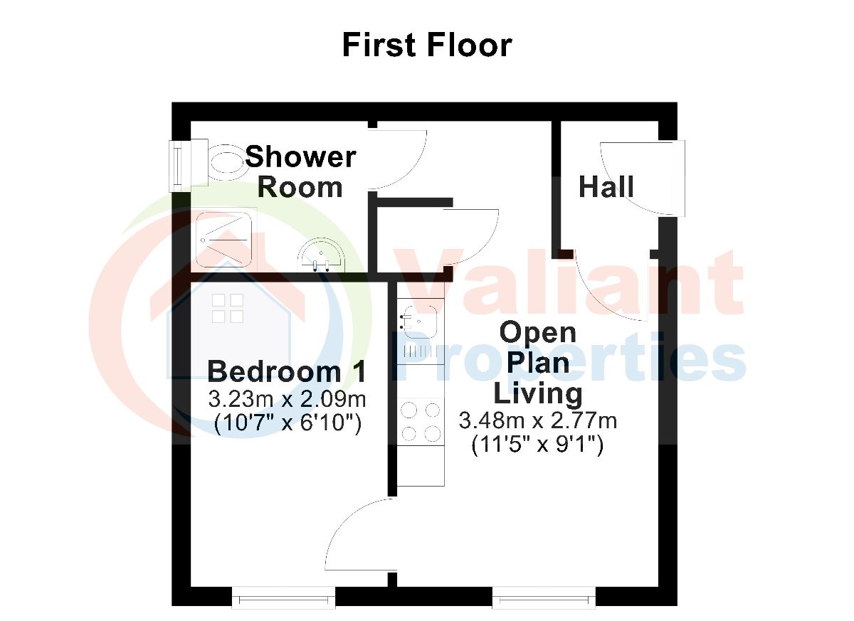 Purpose built one bedroom first floor flat set within easy access of town centre & walking distance of local supermarkets. Open plan living, double bedroom & shower room, allocated parking space.