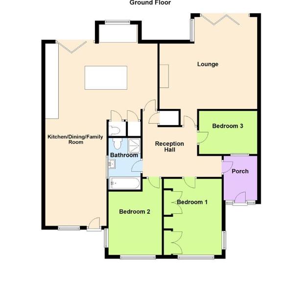 The bungalow offers three well-proportioned bedrooms, each providing excellent flexibility for family living, guests, or home-working.Servicing the home is a luxurious four-piece white suite family bathroom, featuring a bath, separate shower, WC and wash basin, finished to a high standard and designed with both comfort and practicality in mind.Externally, the property truly excels.