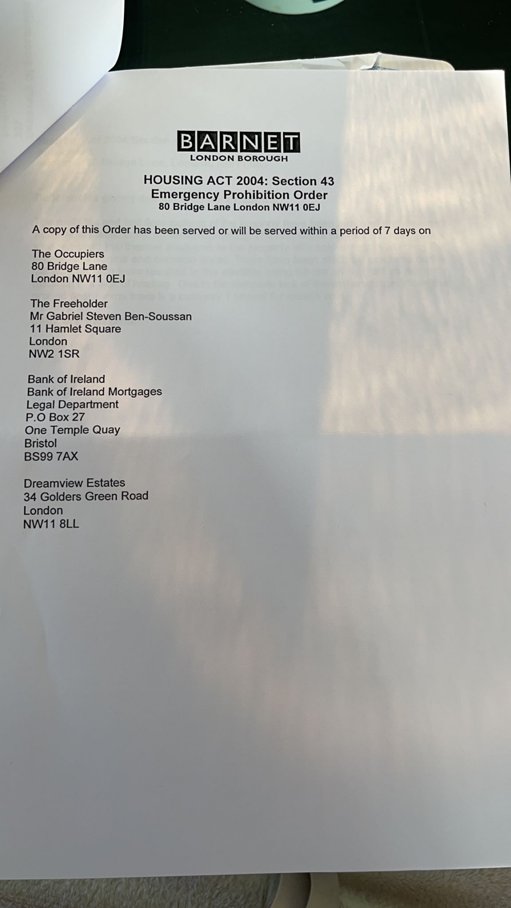 Warning for anyone considering letting or renting a property through Dreamview Estates and/or Gabriel Ben-Soussan. Seven days ago 3 tenanted flats at 80 Bridge Lane, NW11 0EJ were served with Emergency Prohibition Orders and all 4 occupants were made homeless. The action of Barnet Council was quick and correct. The EPO was enforced due to the removal of the roof and ceilings, dangerous/faulty electricity, no hot water and heating etc.. The refurbishment should have commenced once the building was fully vacant. But by harassment and bullying some tenants were forced to leave and had never received a Section 21. Amateurs and down right disgusting behaviour from Freeholder/Landlord and Dreamview. When Victor took a dislike to a tenant he then made their lives hell. One time when F3 whom like everyone has repeatedly asked for electricity certificates wrote a review naming him as the unprofessional chap/bully he is , Victor drove round "wanting to rip his head off" which is a bit of a joke considering how scrawny Victor is. It transpires that the electricity meter had been tampered with so the real consumption was not being recorded (photos of before and after taken including a video covertly taken of the two electricians whom attended months ago to make the meter safe whom confirmed the stealing of electricity). Thus explains why nobody had been forthcoming with a certificate. Fast forward to last Saturday 13/11/21 and London Fire Brigade attended and shut down all of the electricity due to it being unsafe as plugs were exploding out of the wall sockets and LFB couldn't even isolate anything. Between the landlord and managing agent whom are experts at bouncing off any blame and responsibility they have made many peoples lives hell. Am representing myself, present tenants and former tenants all whom are happy to come forward in the event either parties want to pursue legal action (which would be hysterical) as all what I have stated is factual and can be proven in a court of law.
