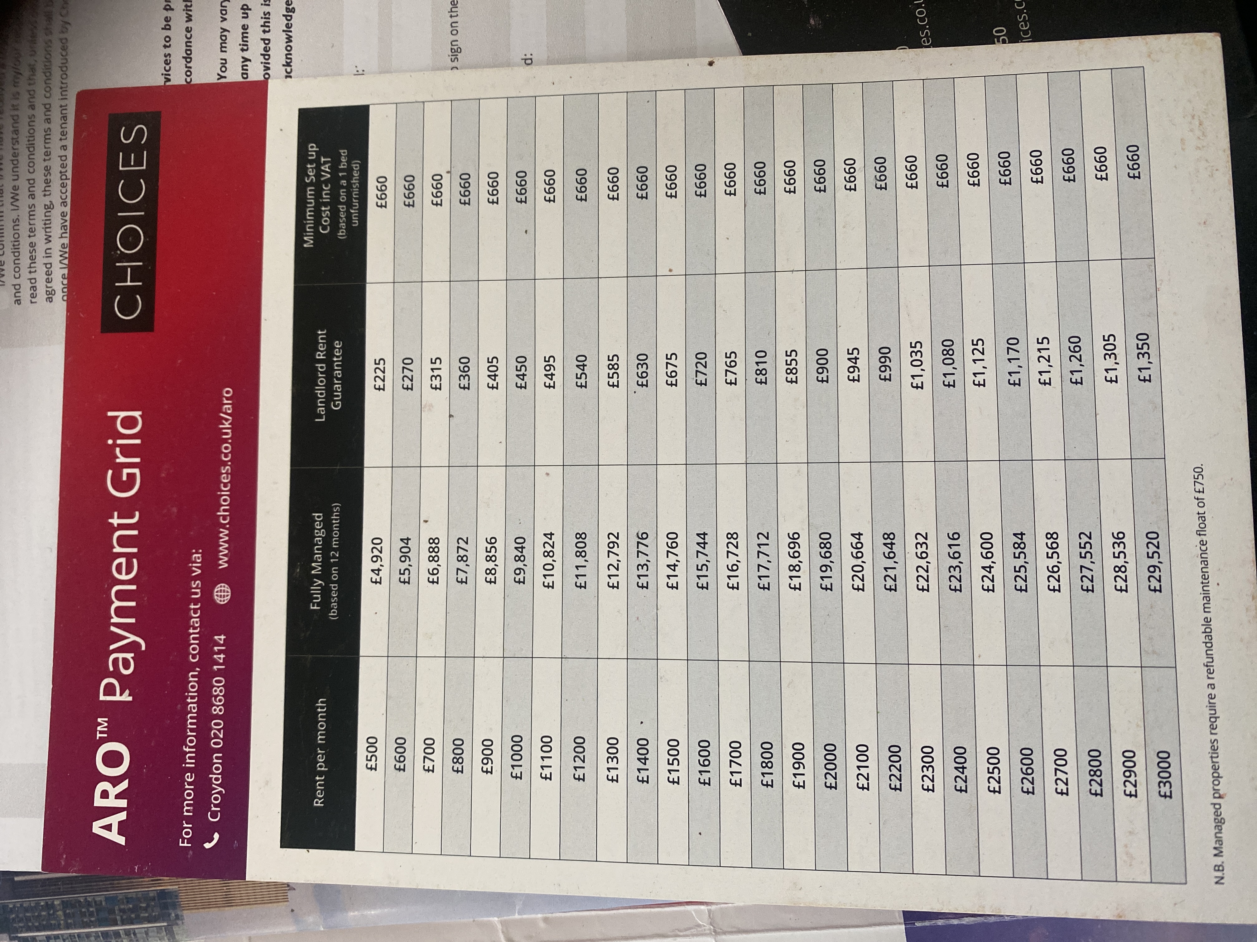 Rent PCM : £1250
