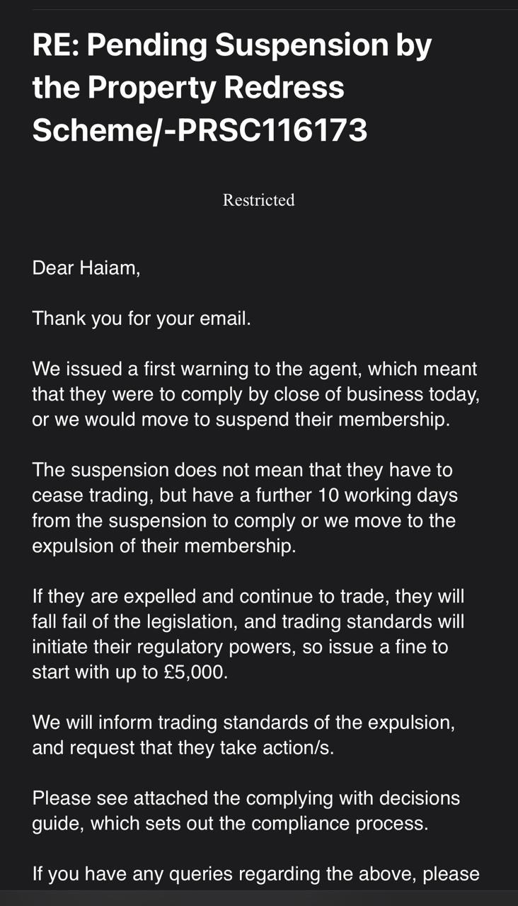 Property Redress Scheme exposed the fraudulent tactics. Like previous reviews, rented the flat and did not pay me any rent. Property Redress Scheme gave them a fine and a final order to pay but they did not comply.I am waiting their membership to be cancelled which gave me my flat back. Please ... Read Full Review